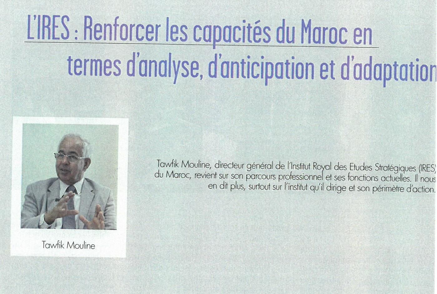 The Mines of Paris, Saint-Étienne and Nancy's engineer’s magazine, published in its issue 491 of May-June 2017, an interview with Mr. Mohammed Tawfik MOULINE, Director General of the Royal Institute for Strategic Studies, entitled “IRES: Strengthening Morocco's capacities in terms of analysis, anticipation and adaptation”
